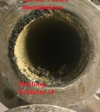 Deposit formation in wastewater treatment plants often leads to increased operating expenses. This is also the case with our customer. Within three months, the floating sludge lines leading from the primary clarifiers became so overgrown with greasy deposits that intensive cleaning was necessary.