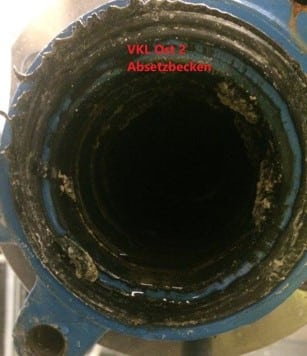 The following figures show examples of the various line sections after 5 weeks of test operation. Various cleaning programs are stored in the COMPREX® unit, which are used for the respective assigned pipe section.