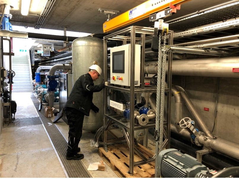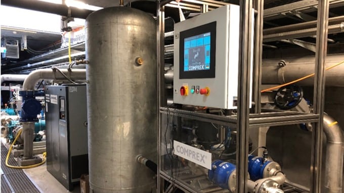 The challenge, however, was to permanently slow down or even prevent deposit formation. This gave rise to the idea of permanently integrating a COMPREX® unit into the existing cleaning system on site. To enable shorter cleaning cycles, the operator was provided with the prototype of a stationary COMPREX® module (SCM). Different cleaning programs should be tested on different pipelines over several months and compared with each other.