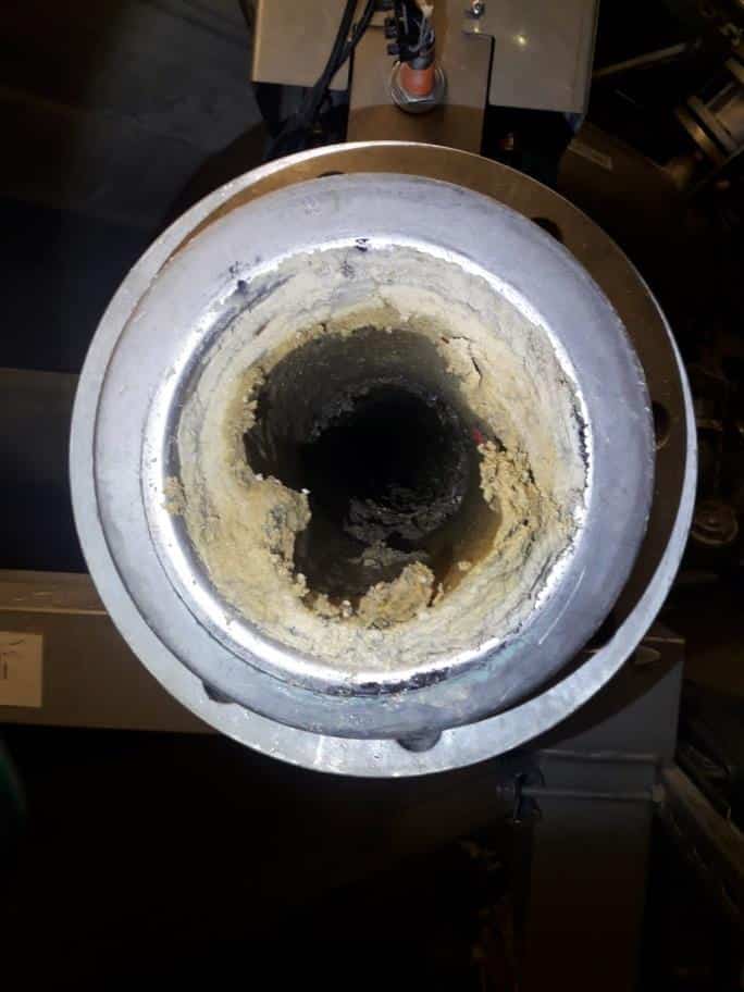 After an initial meeting in early 2019, it was decided to conduct a first test week with COMPREX®, supported by the use of rock salt as a solid. One month after manual cleaning, on-site test cleanings already showed high effectiveness. The deposits of one month could be largely removed.