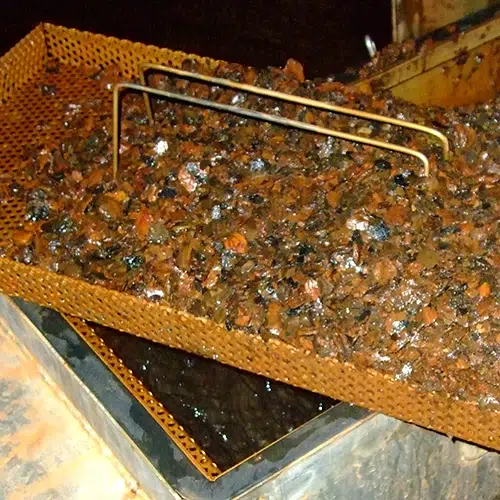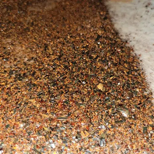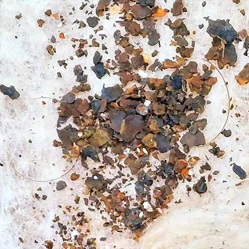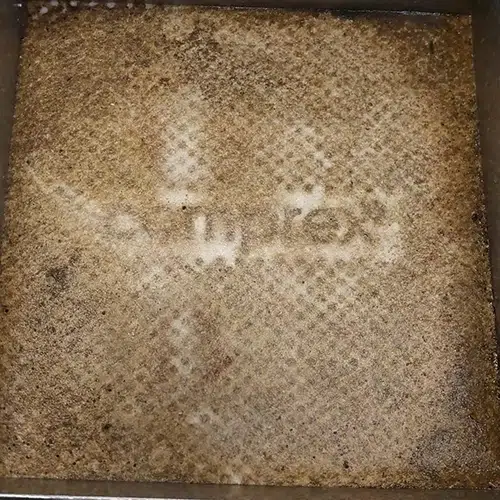 Austrag nach Reinigung eines Werkzeuges, gut sichtbar auf dem Filtervlies
